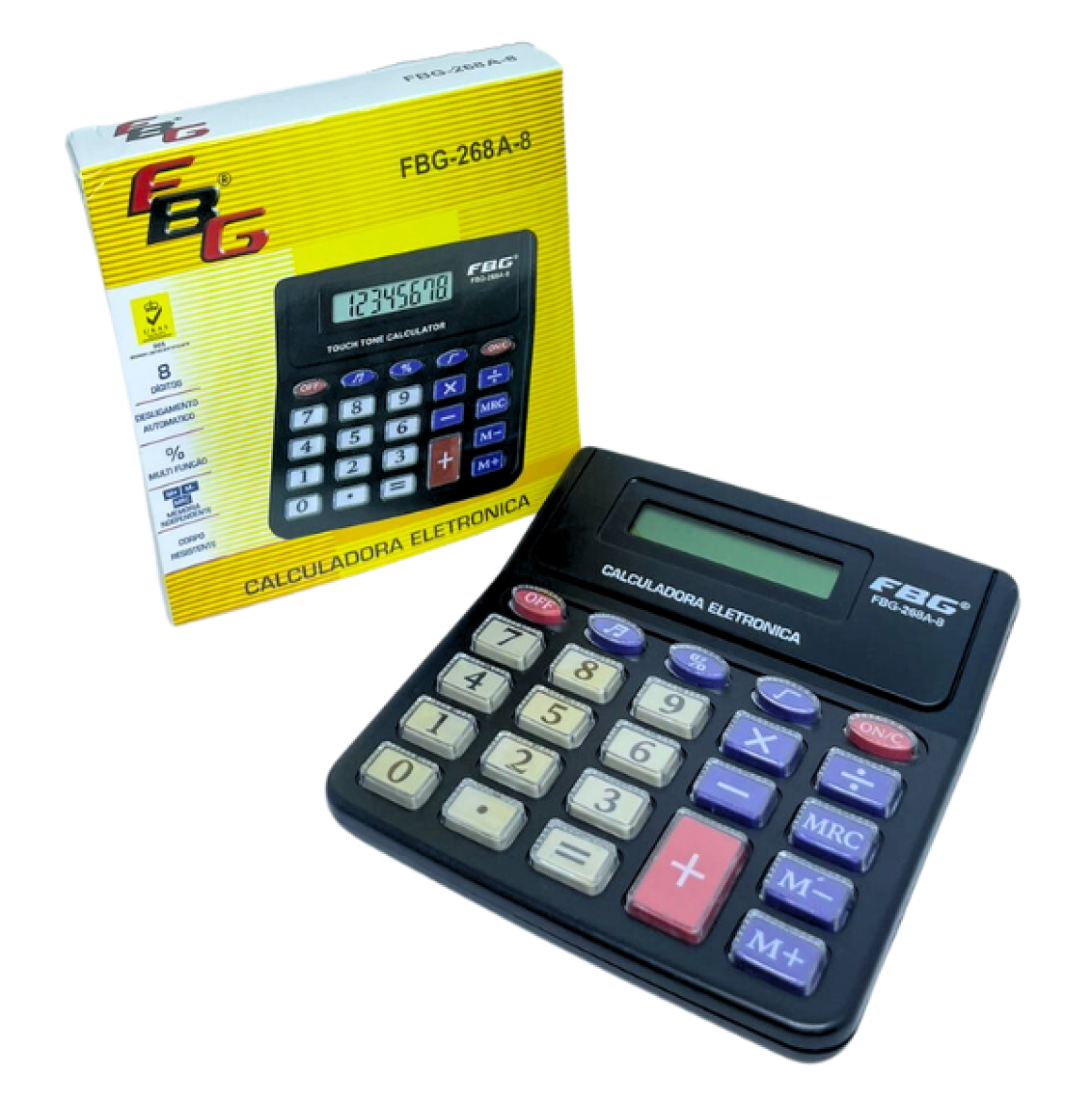 Calculadora 8 dig FBG foi projetado para oferecer praticidade, qualidade e durabilidade. Fabricado com materiais de alta qualidade