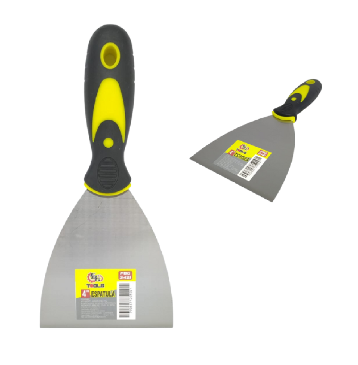 Descrição: Espatula tamanho 4. Indicada para aplicação de massa corrida, argamassa, textura, gesso, entre outros. Utilizada também para raspagem.