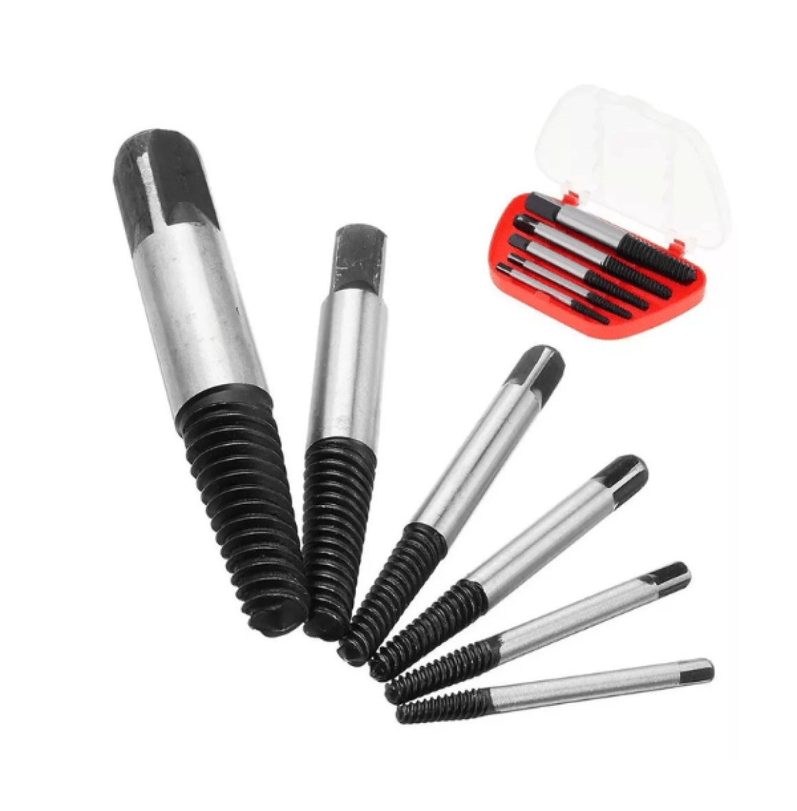 Descrição: Jogo extrator de parafusos, ideal para retirada de parafusos quebrados, enferrujados, espanados de equipamentos como máquinas, ferramentas e outros.