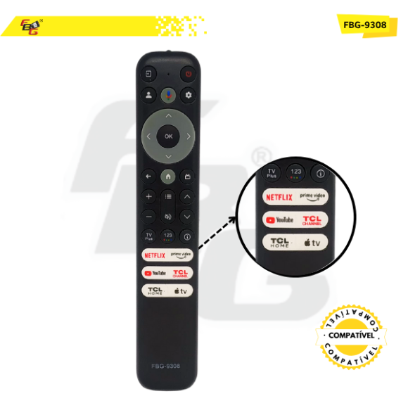 Controle Remoto Smart compatível c/ TCL - Modelo - FBG-9308