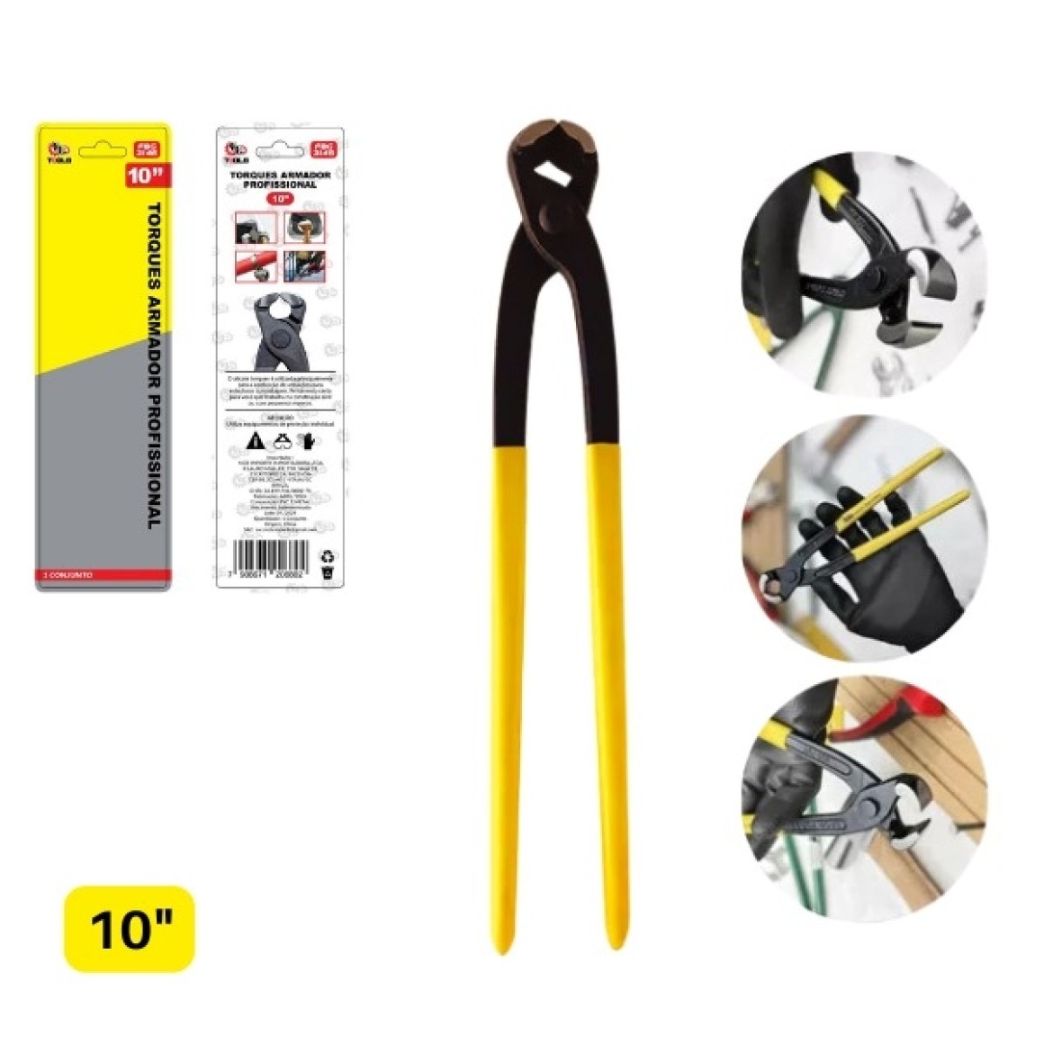 Descrição: Alicate de tamanho 10´´ com 24 cm e cabo emborrachado. O alicate torques é utilizado principalmente para a confecção de armações para estruturas concretagem.