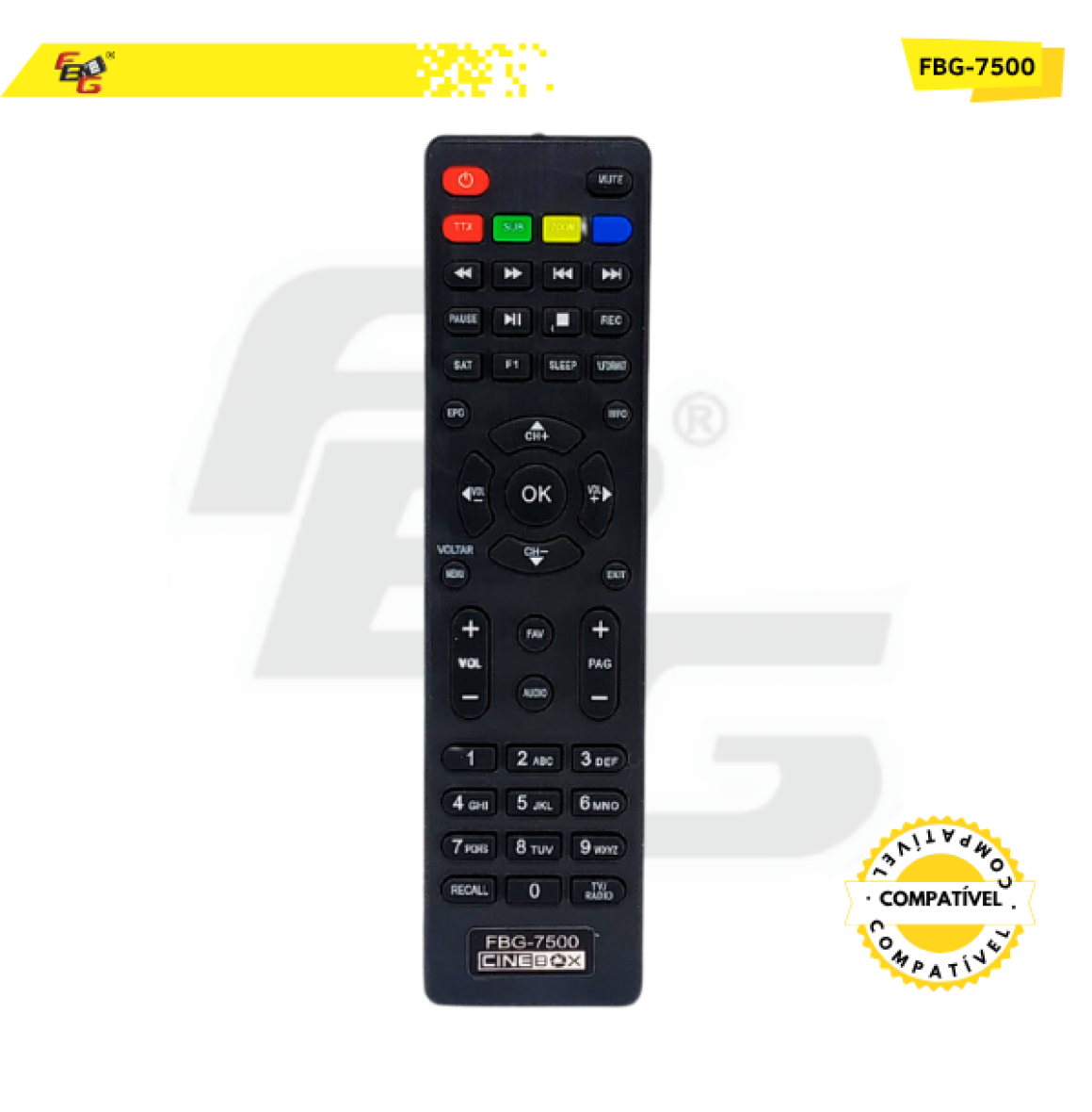 Controle Remoto compatível com Receptor Cinebox - Modelo FBG-7500