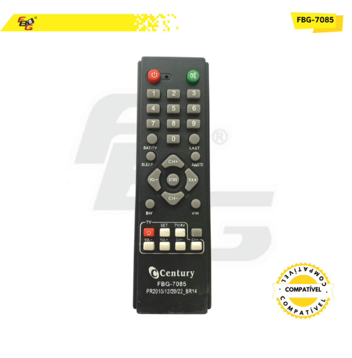 Controle Remoto compatível com Receptor Century - Modelo FBG-7085