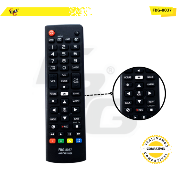 Controle Remoto Smart Compatível C/ LG - FBG- 8037