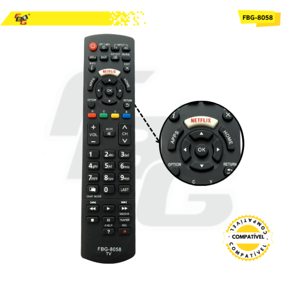 8058 CONTROLE SMART COMPATÍVEL C/ PANASONIC C/NETFLIX