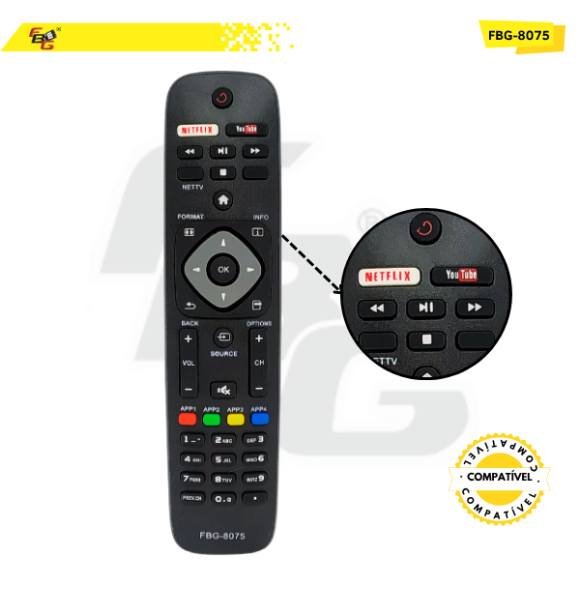 Controle Remoto Smart Compatível C/ Philips C/ Netflix MODELO-8075