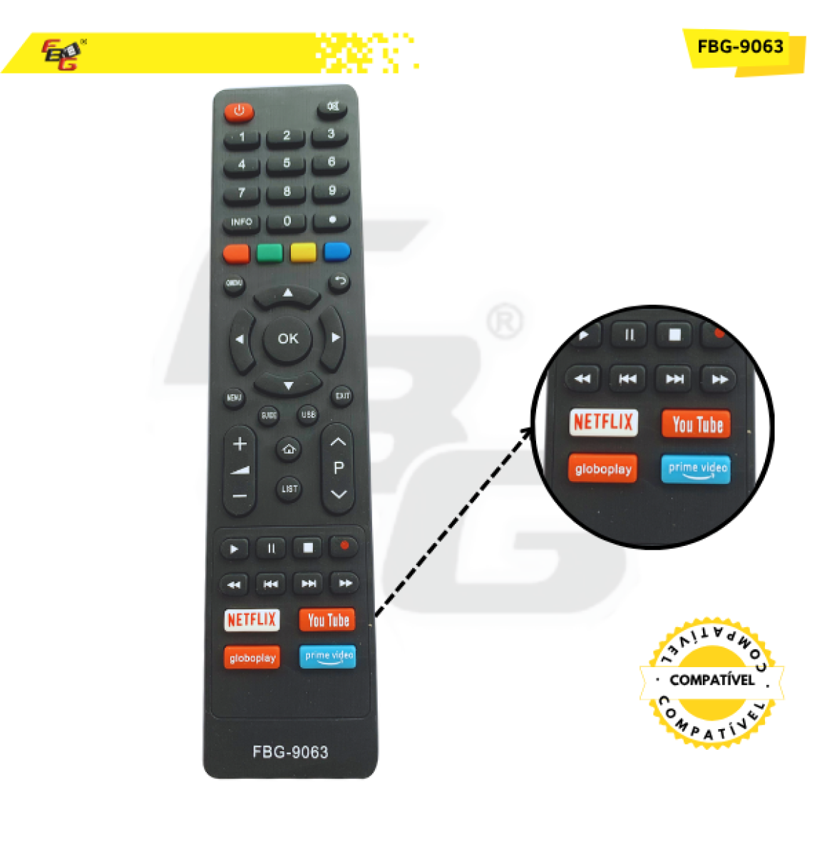 O Controle Remoto da FBG da foi projetado para oferecer praticidade, qualidade e durabilidade. Fabricado com materiais de alta qualidade, ele possui teclas macias, plástico resistente e um LED transmissor com excelente tempo de resposta, garantindo uma experiência de uso rápida e eficiente.