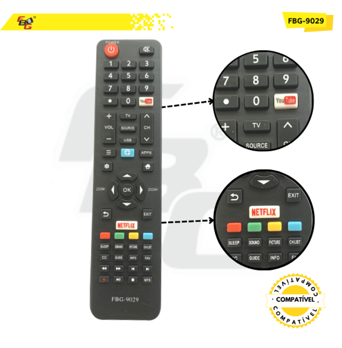 Compatibilidade: Compatível com Semp Toshiba c/ Youtuber e Netflix