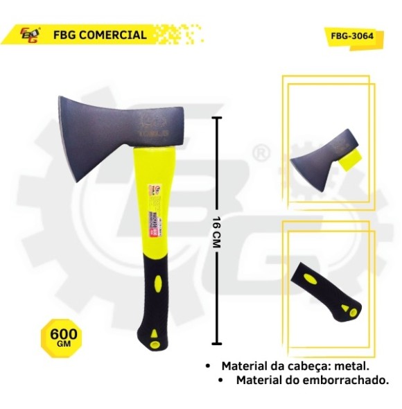 Descrição: Machadinha de aço com cabo emborrachado de 600GM. Indicado para diversas atividades, desde o corte de lenha, ate a construção e jardinagem.