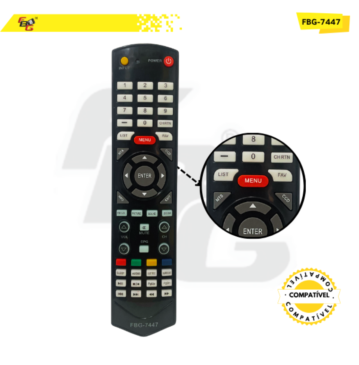 O Controle Remoto da FBG da foi projetado para oferecer praticidade, qualidade e durabilidade. Fabricado com materiais de alta qualidade, ele possui teclas macias, plástico resistente e um LED transmissor com excelente tempo de resposta, garantindo uma experiência de uso rápida e eficiente.