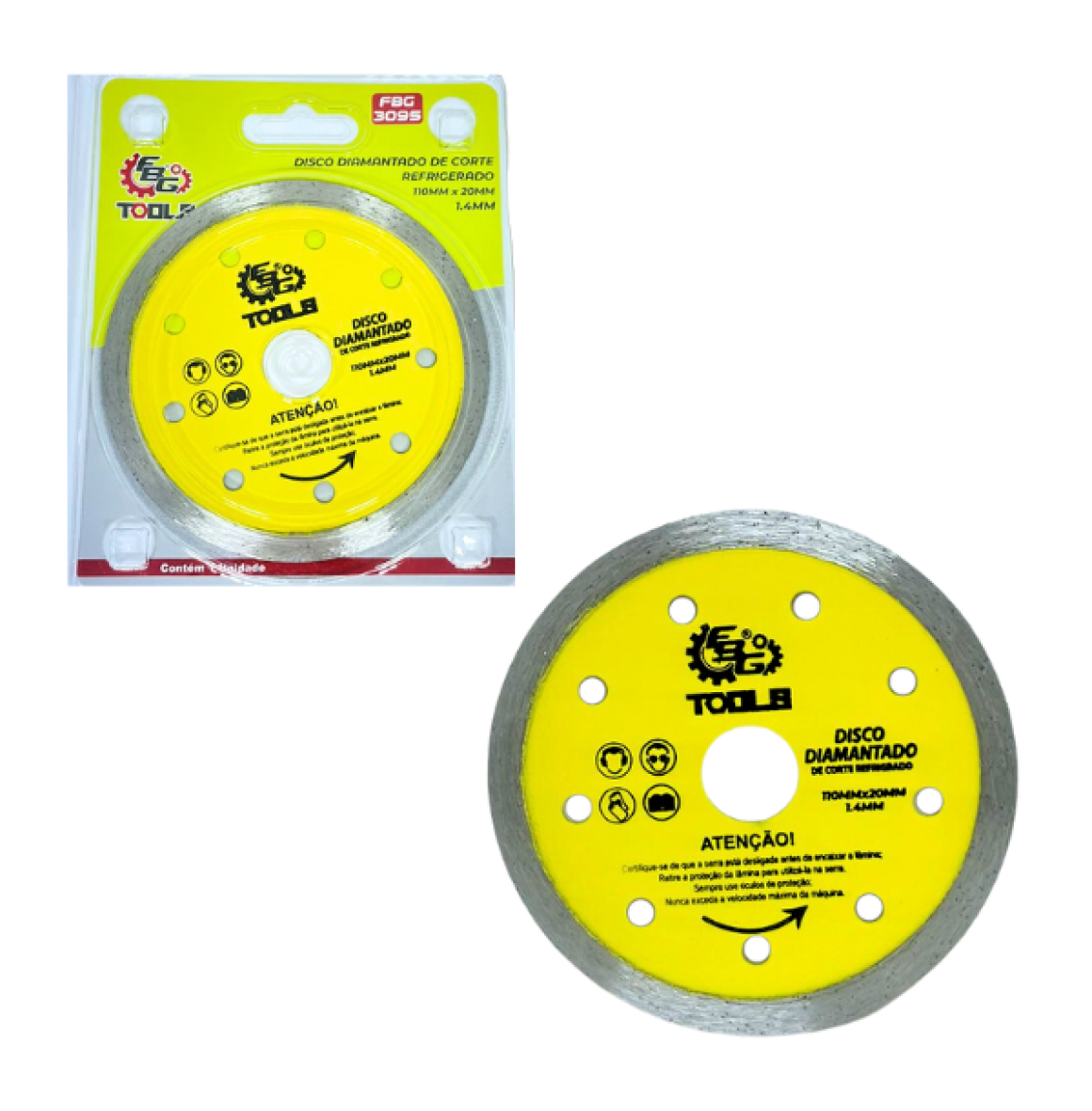 Descrição: Disco diamantado de corte refrigerado 110MM x 20MM - Rotação: 13.500 RPM