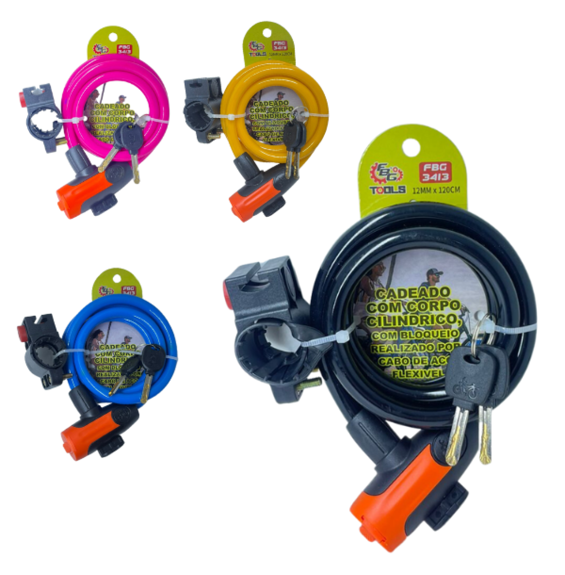 Cadeado para bicicleta FBG foi projetado para oferecer praticidade, qualidade e durabilidade. Fabricado com materiais de alta qualidade