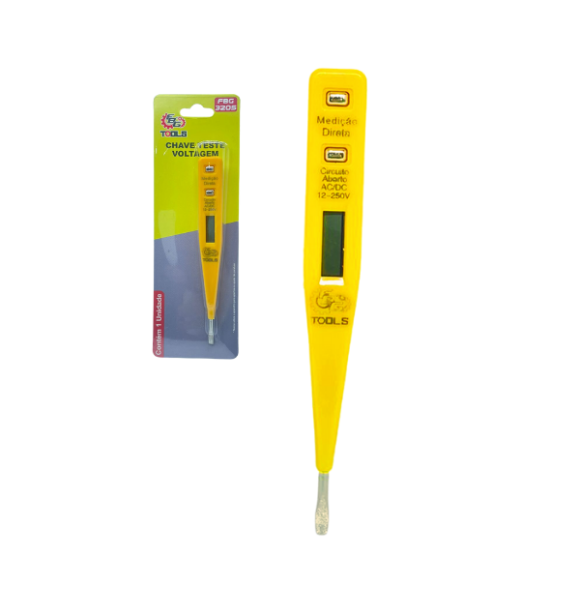 Descrição: Chave teste é uma ferramenta que tem bastante utilidade para eletricistas. Com ela é possível realizar o teste de voltagem e corrente digital entre 12V e 220V.