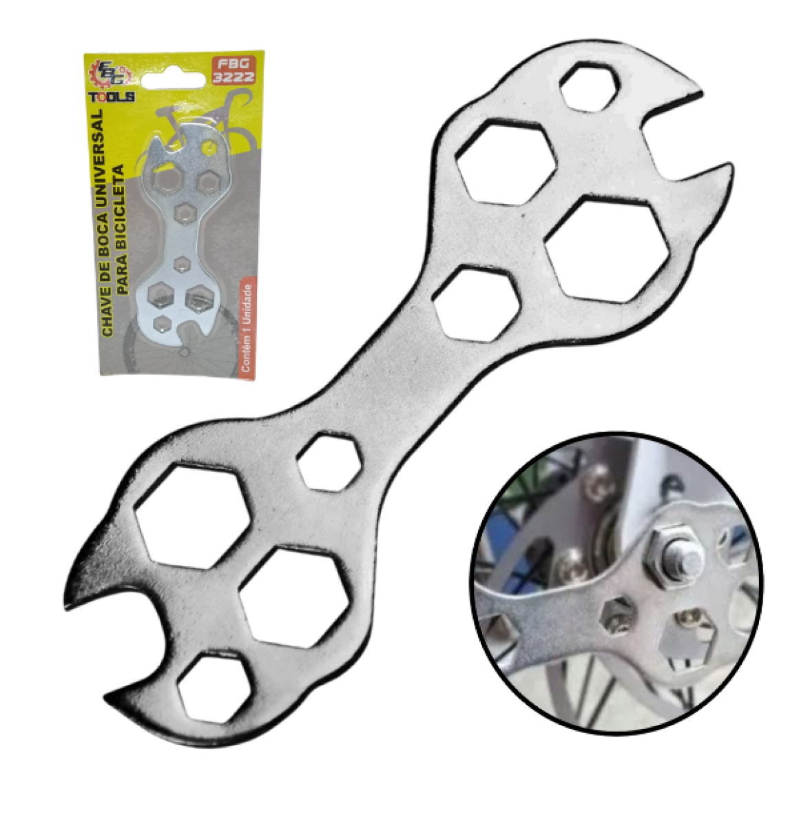 Descrição: Chave multifuncional 10 em 1. Ideal para bicicletas, com bocas de 8mm á 17mm.