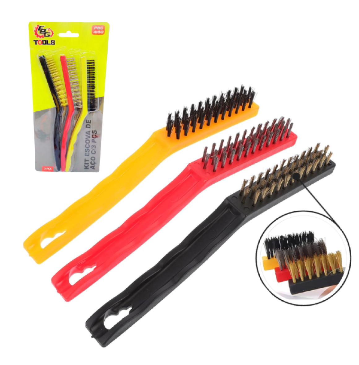 KIT ESCOVA AÇO 3 PEÇAS - MODELO FBG 4160