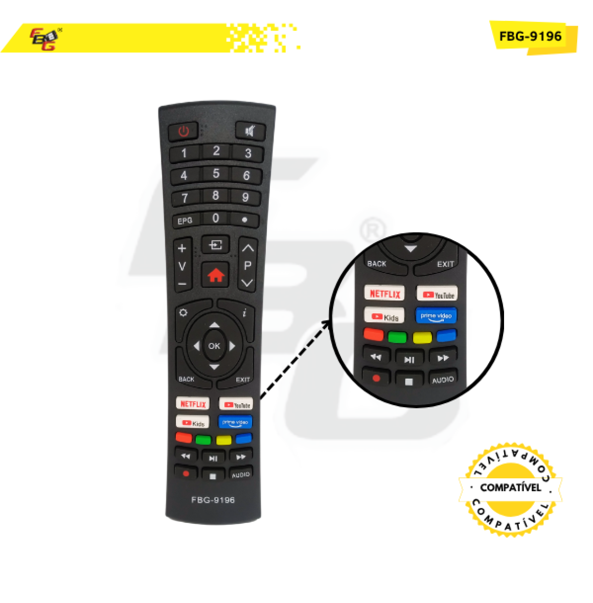 Controle Remoto Compatível C/ Multilaser Modelo FBG-9196