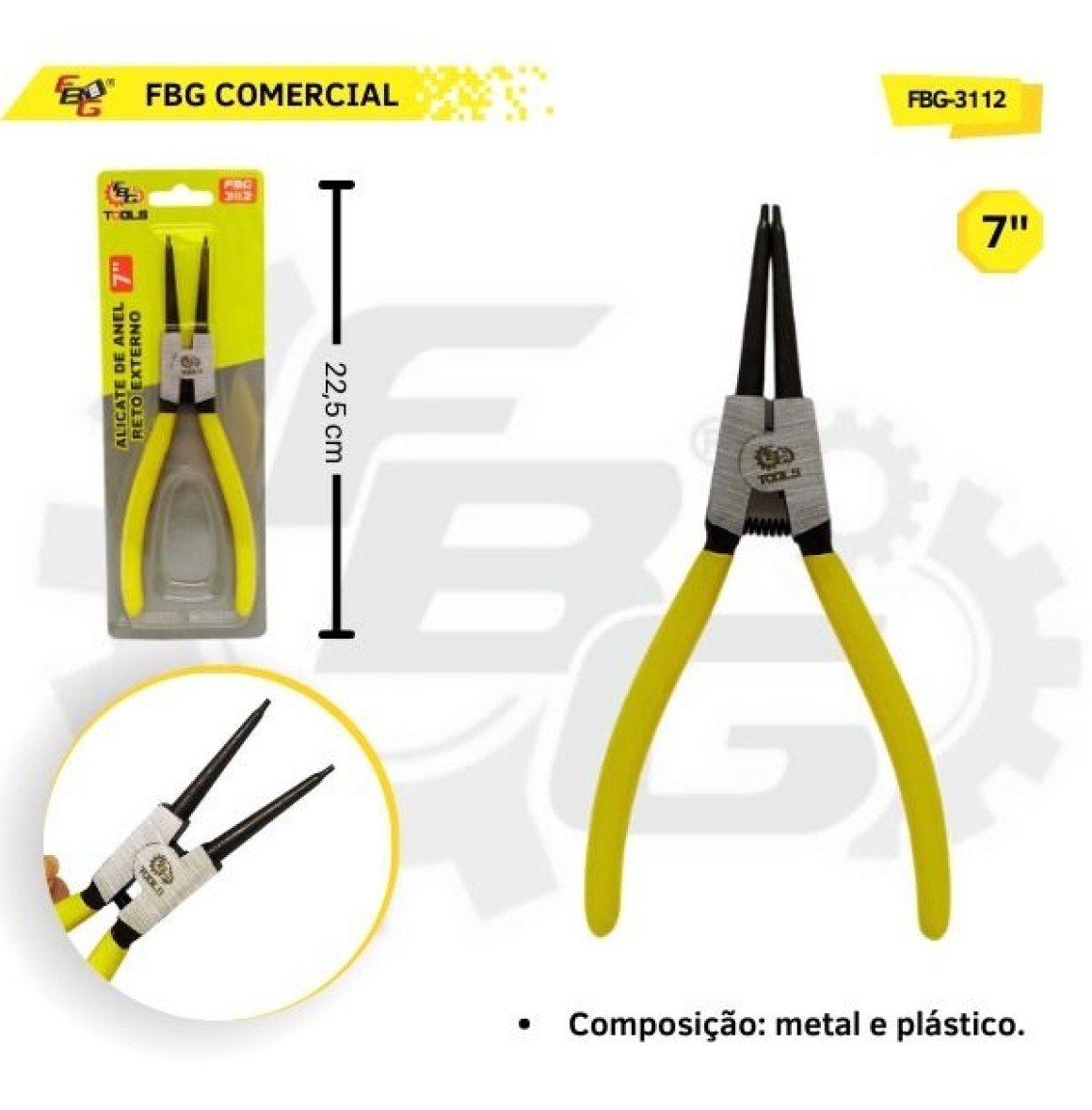 Alicate de anel reto externo FBG foi projetado para oferecer praticidade, qualidade e durabilidade. Fabricado com materiais de alta qualidade