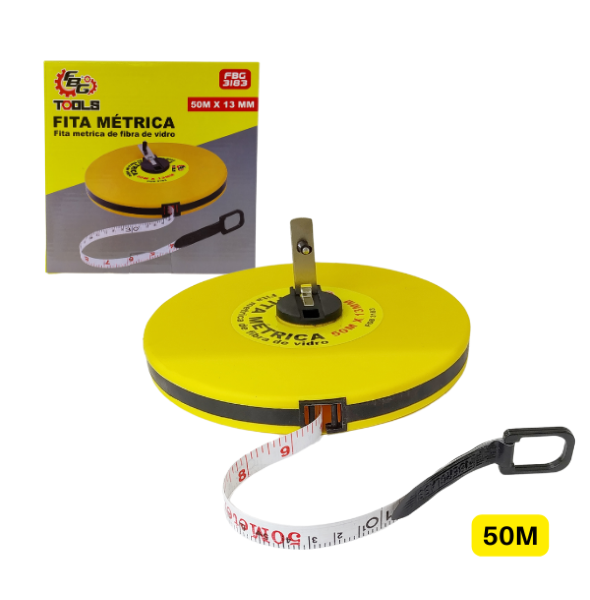 Trena longa / fita métrica 50m FBG foi projetado para oferecer praticidade, qualidade e durabilidade. Fabricado com materiais de alta qualidade