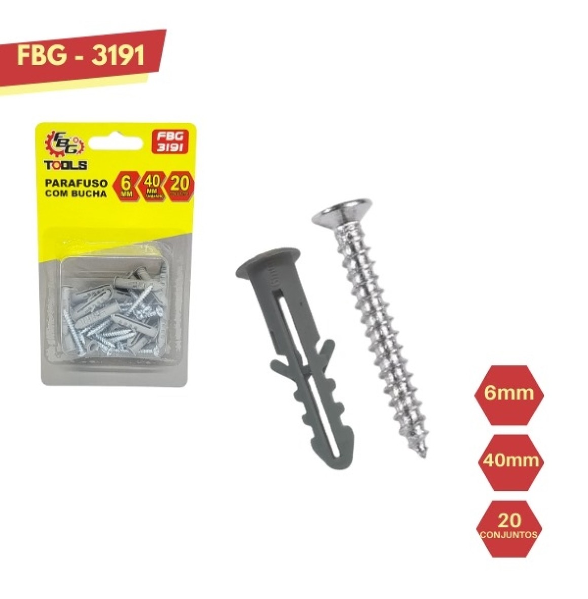 JOGO DE PARAFUSO COM BUCHA 6MM - MODELO FBG 3191