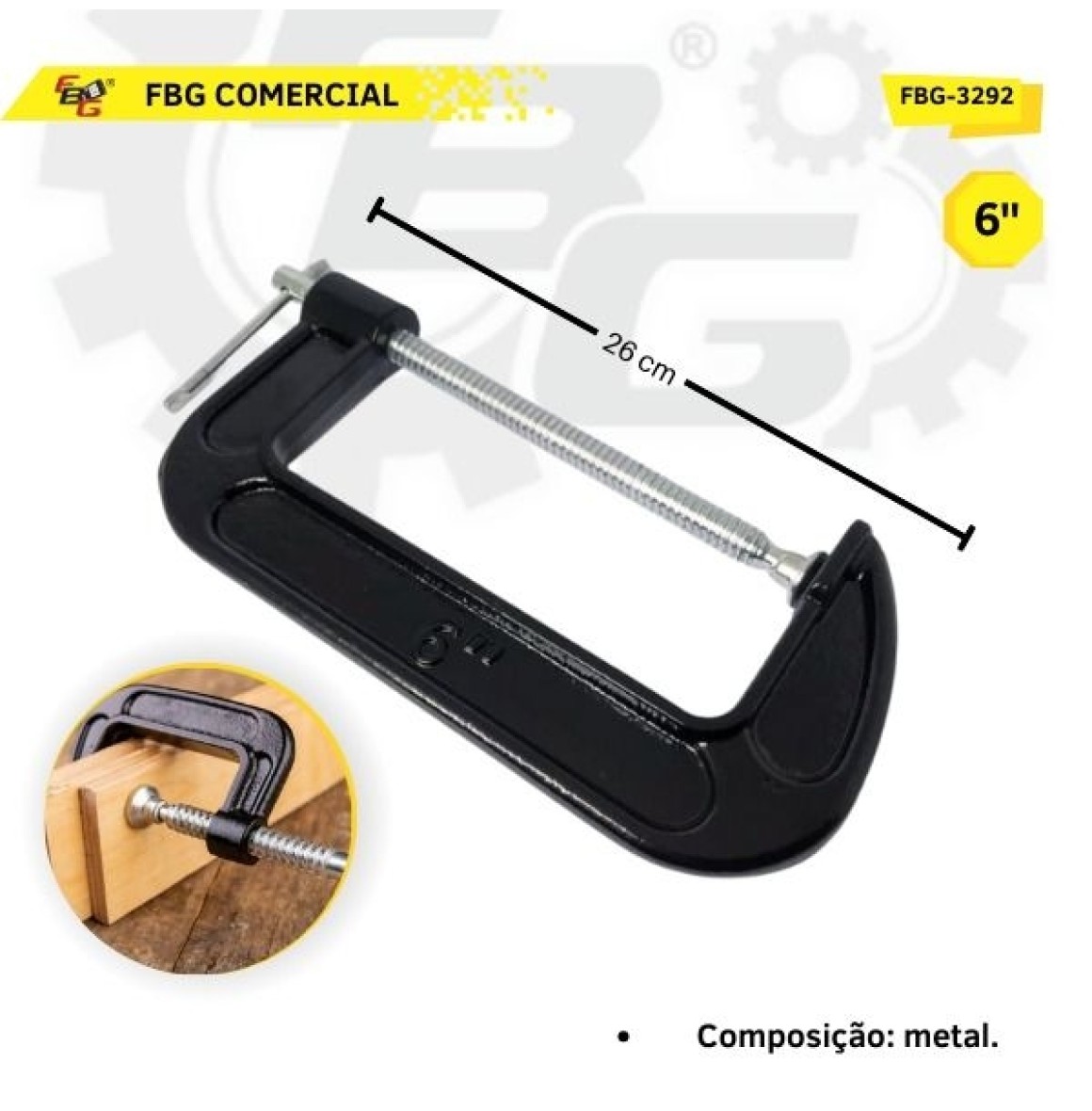 Grampo sargento 6 FBG foi projetado para oferecer praticidade, qualidade e durabilidade. Fabricado com materiais de alta qualidade