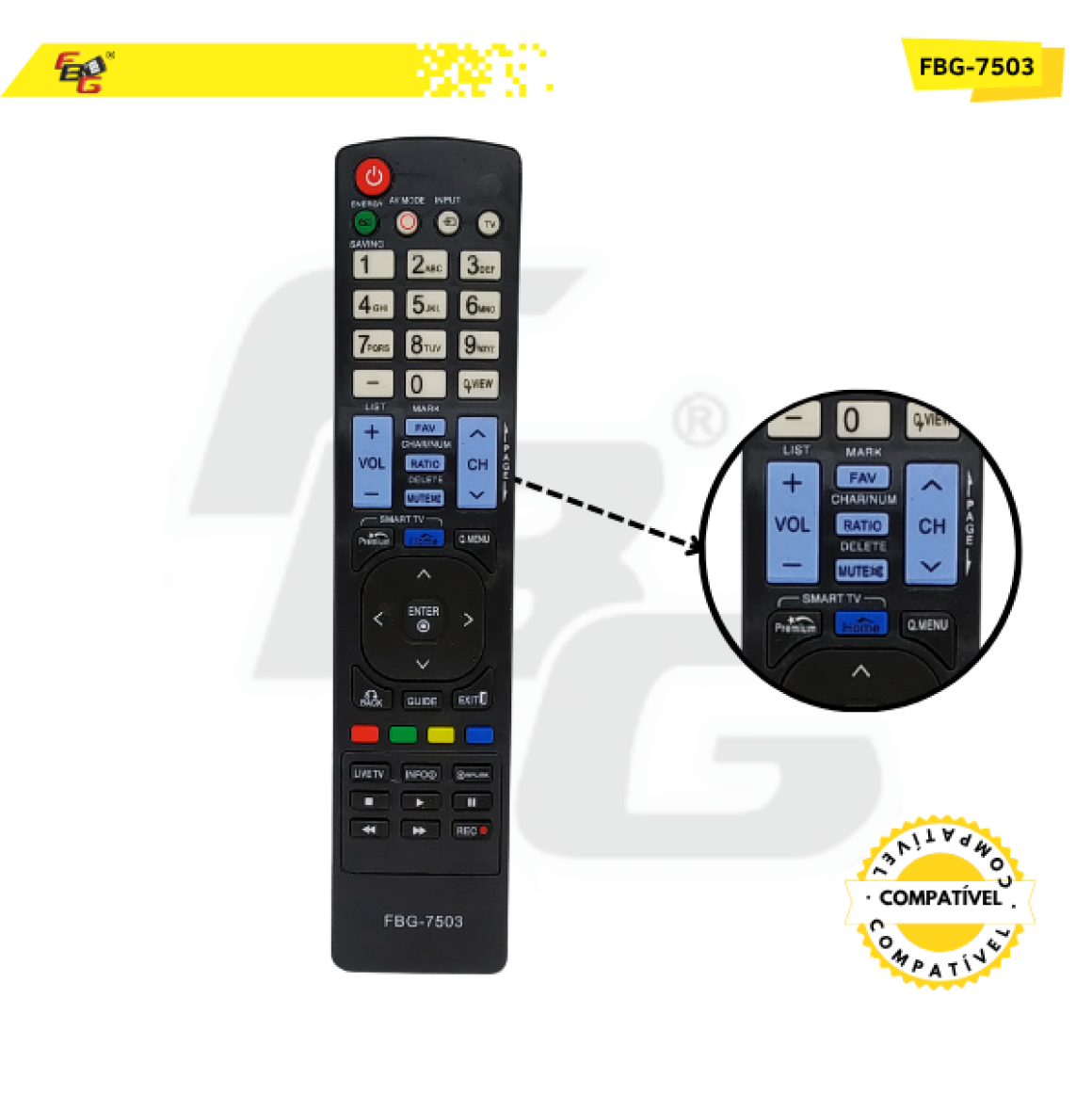 Controle Remoto compatível com TV LG Ratio - Modelo FBG-7503