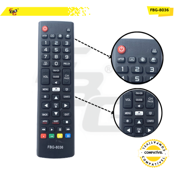 O Controle Remoto da FBG foi projetado para oferecer praticidade, qualidade e durabilidade. Fabricado com materiais de alta qualidade, ele possui teclas macias, plástico resistente e um LED transmissor com excelente tempo de resposta, garantindo uma experiência de uso rápida e eficiente.