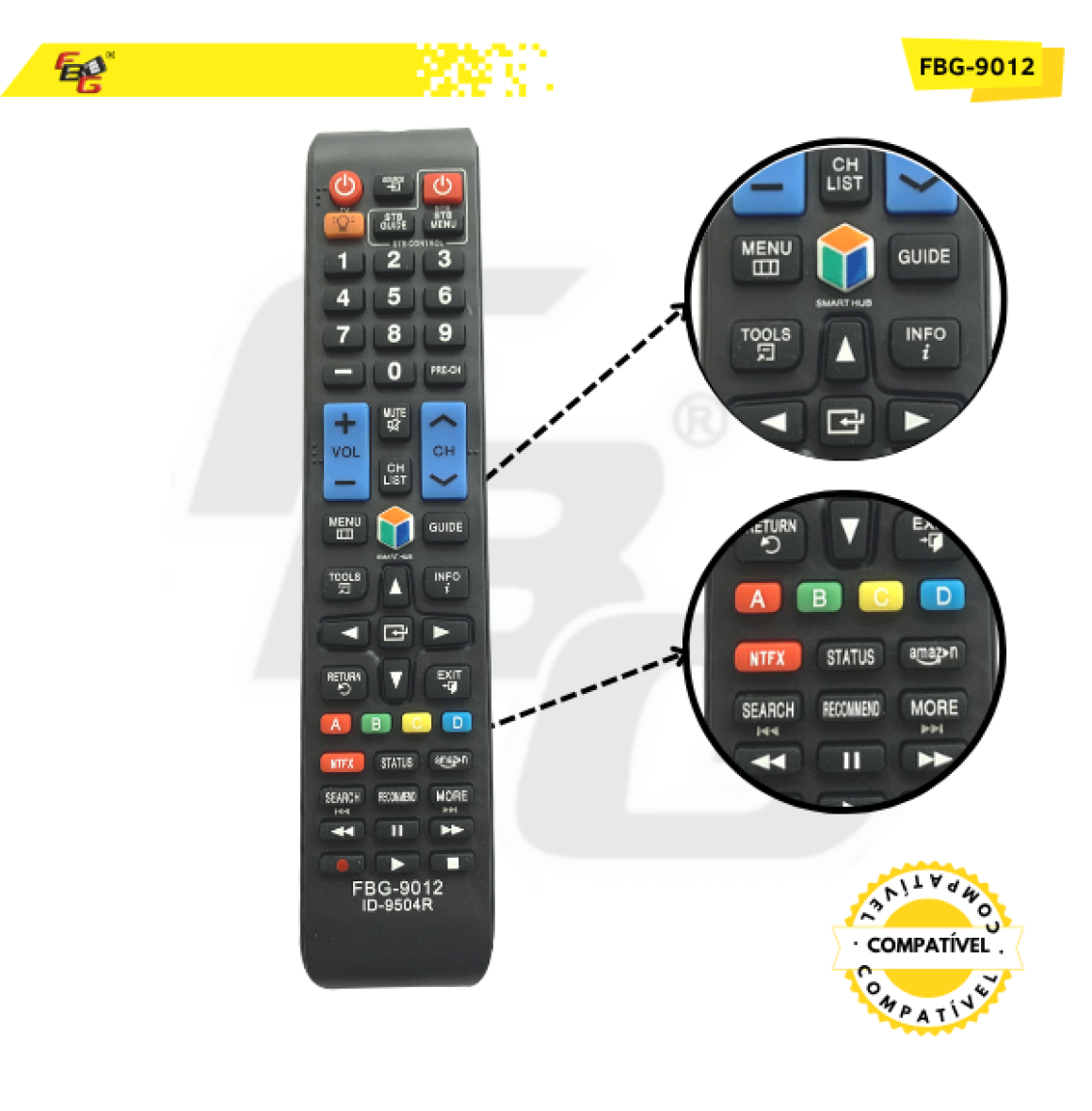 Controle Remoto Smart Compatível C/ Samsung C/ Netflix e Amazon-Modelo FBG- 9012
