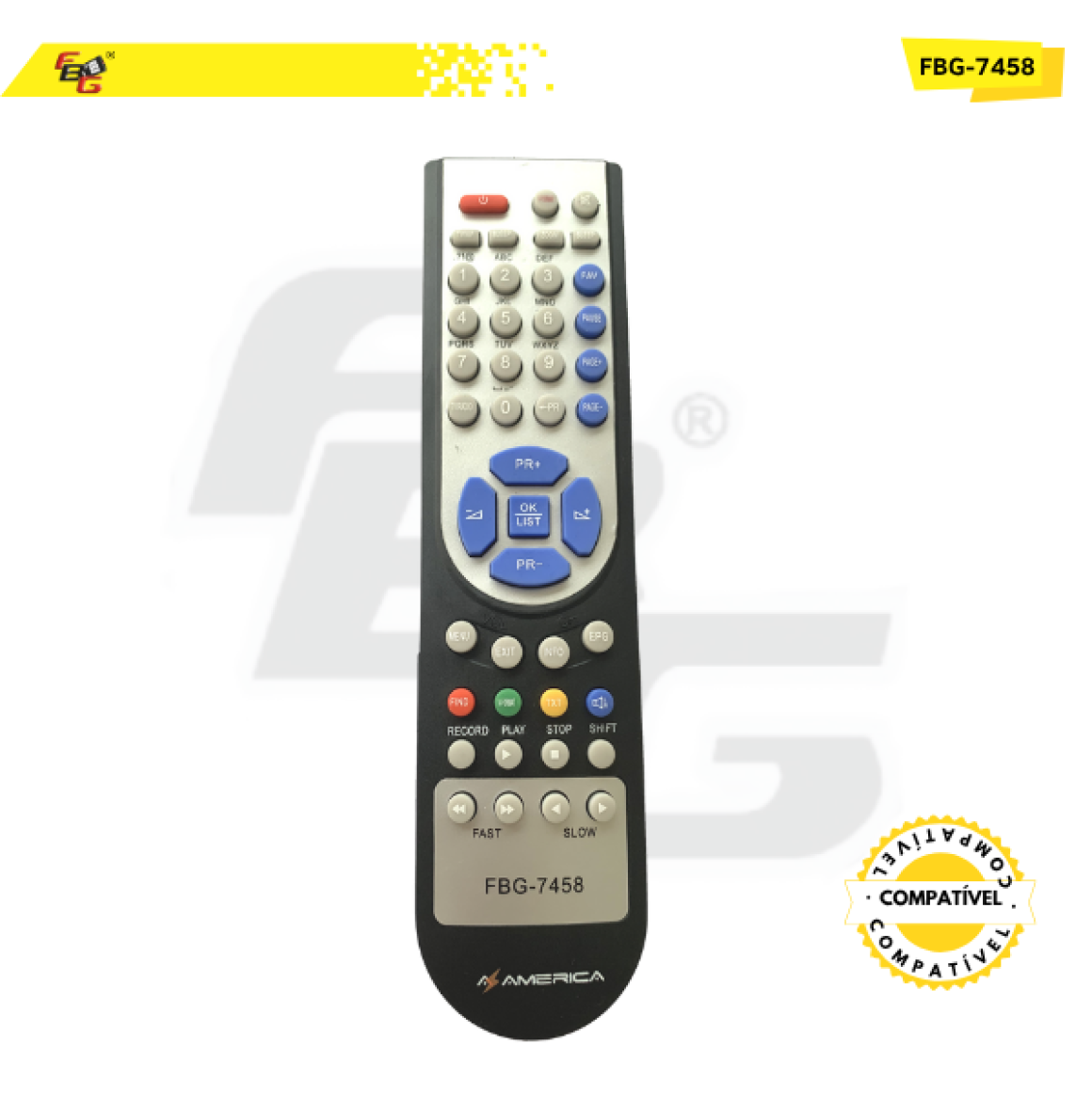 Controle Remoto compatível com Receptor Azamerica - Modelo FBG-7458
