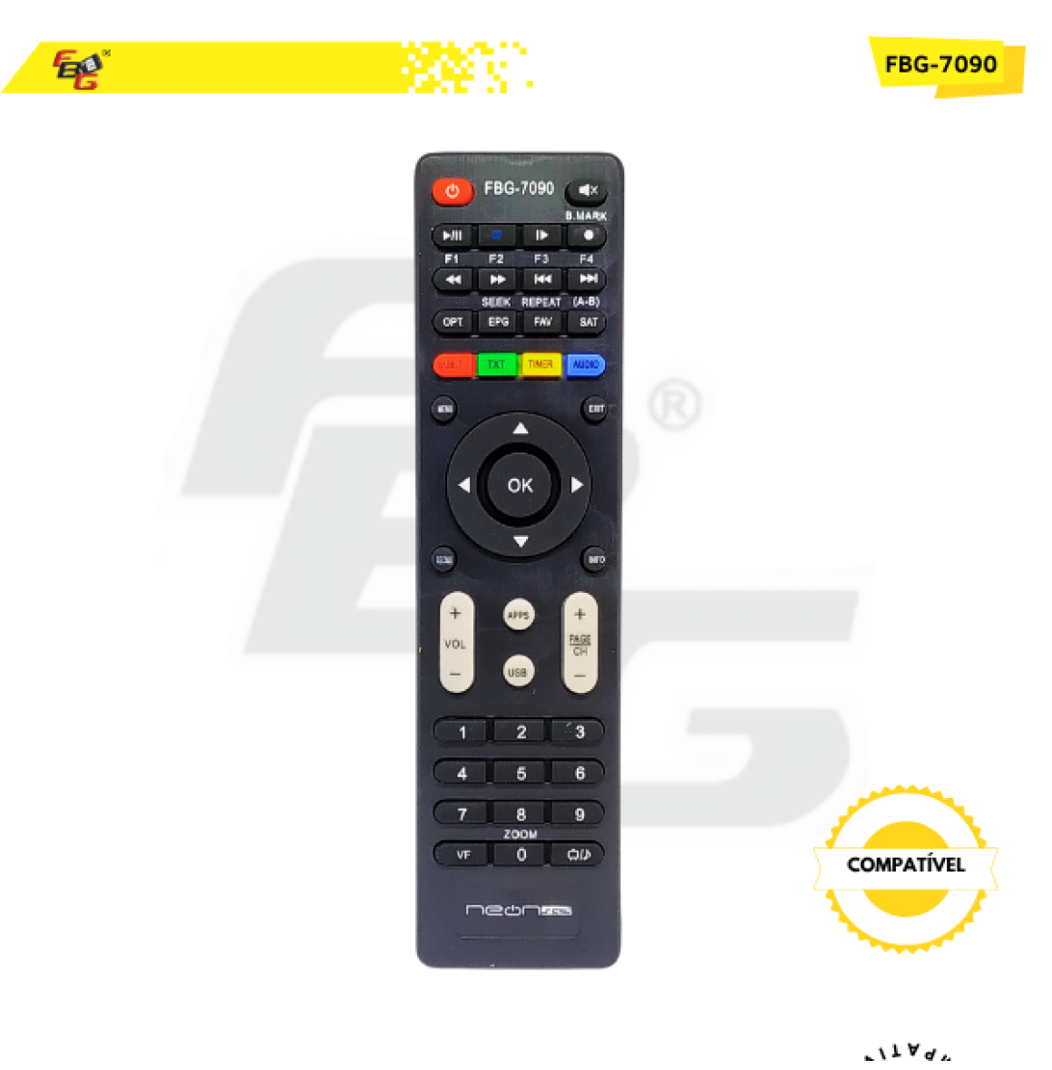 Controle Remoto compatível com Receptor Neonsat - Modelo FBG-7090