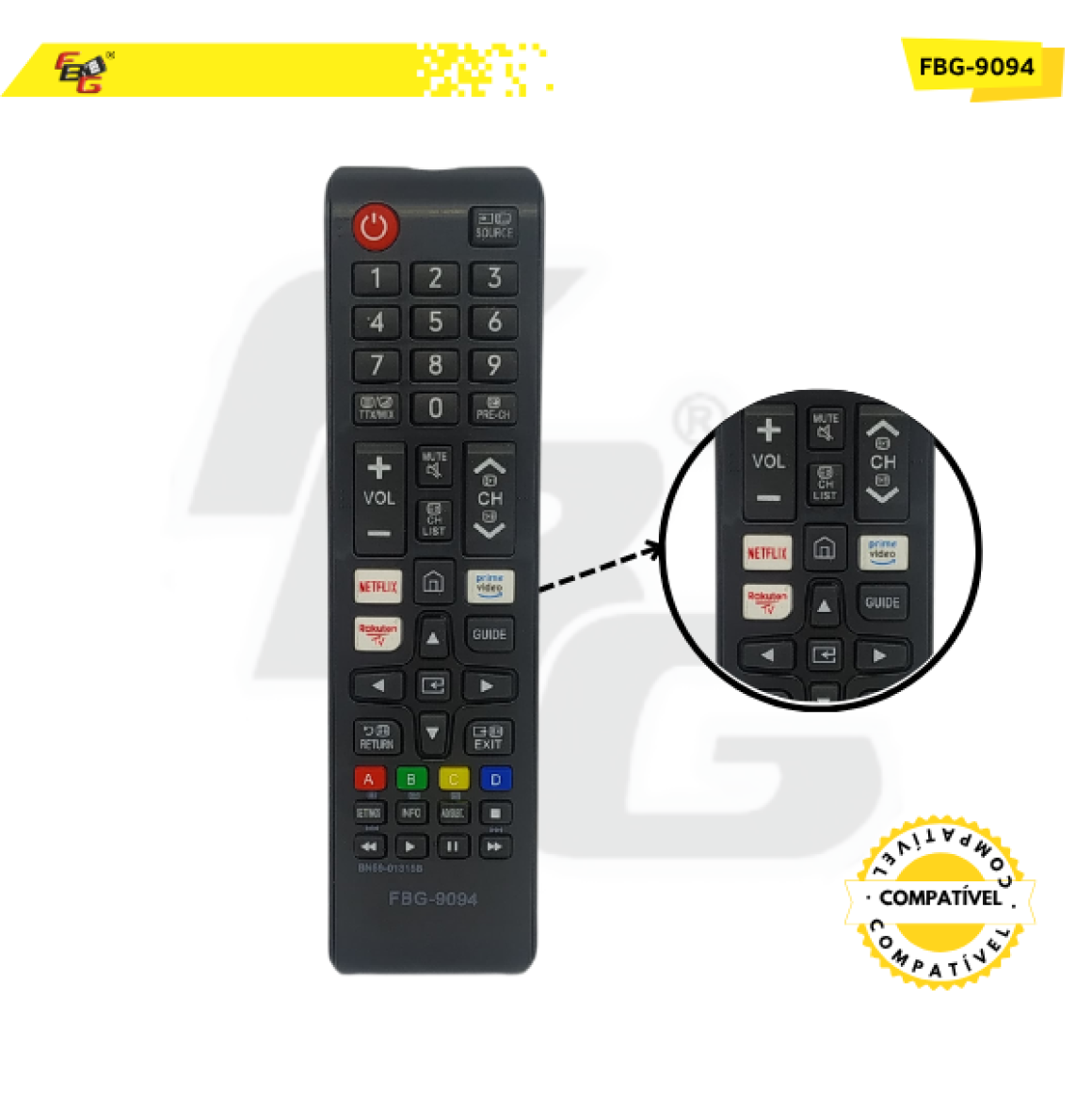 Controle Remoto Smart Compatível C/ Samsung 4K Modelo FBG-9094